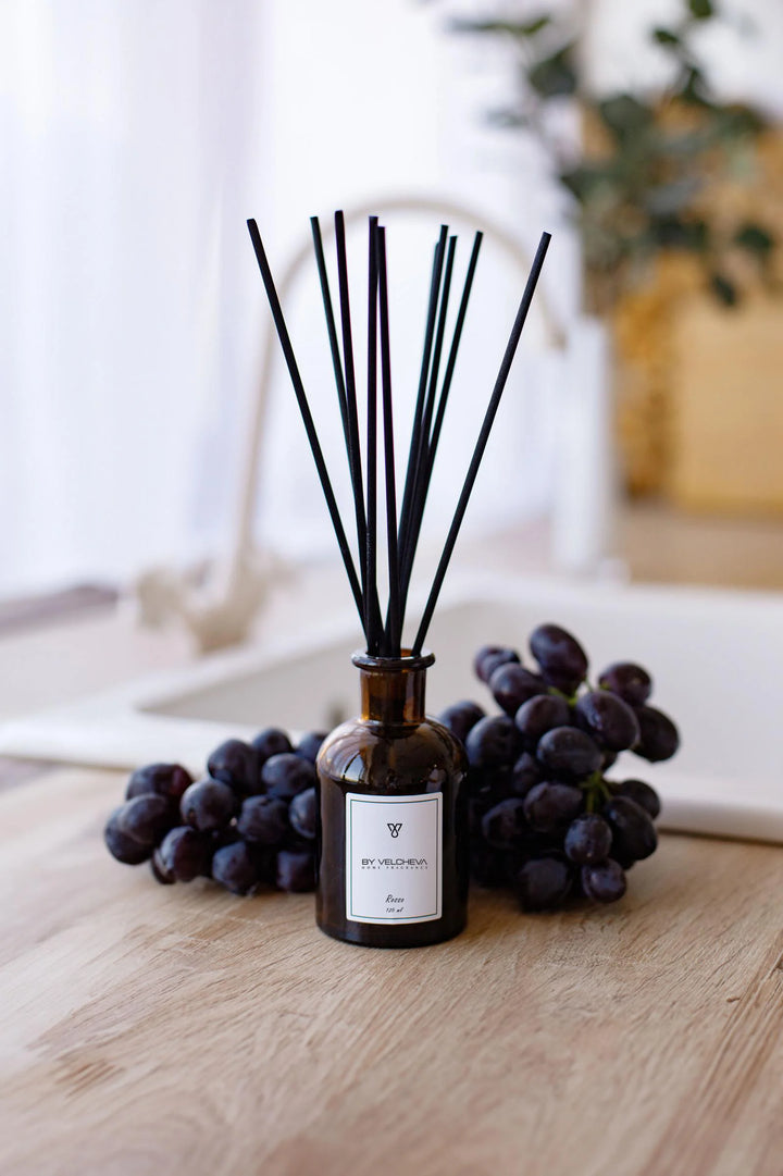 A fragrance with a high concentration of aromatic substances, it fills the entire room. The initial note unfolds into a vegetal aroma of raspberry and birch bark. The leading accord of juicy red grapes fills the room with the tart aroma of dry wine. A note of magnolia colors the trail with soft floral shades.
